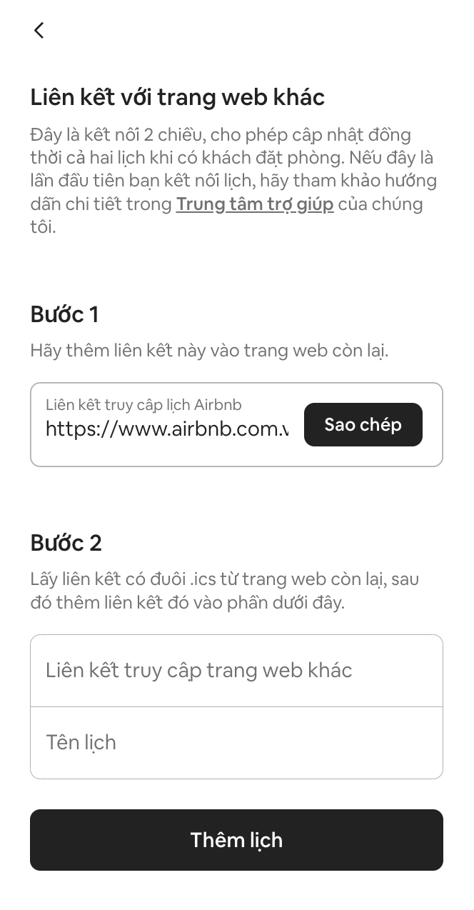 Tại đây, bạn nhấn Sao chép link của Liên kết truy cập lịch Airbnb: