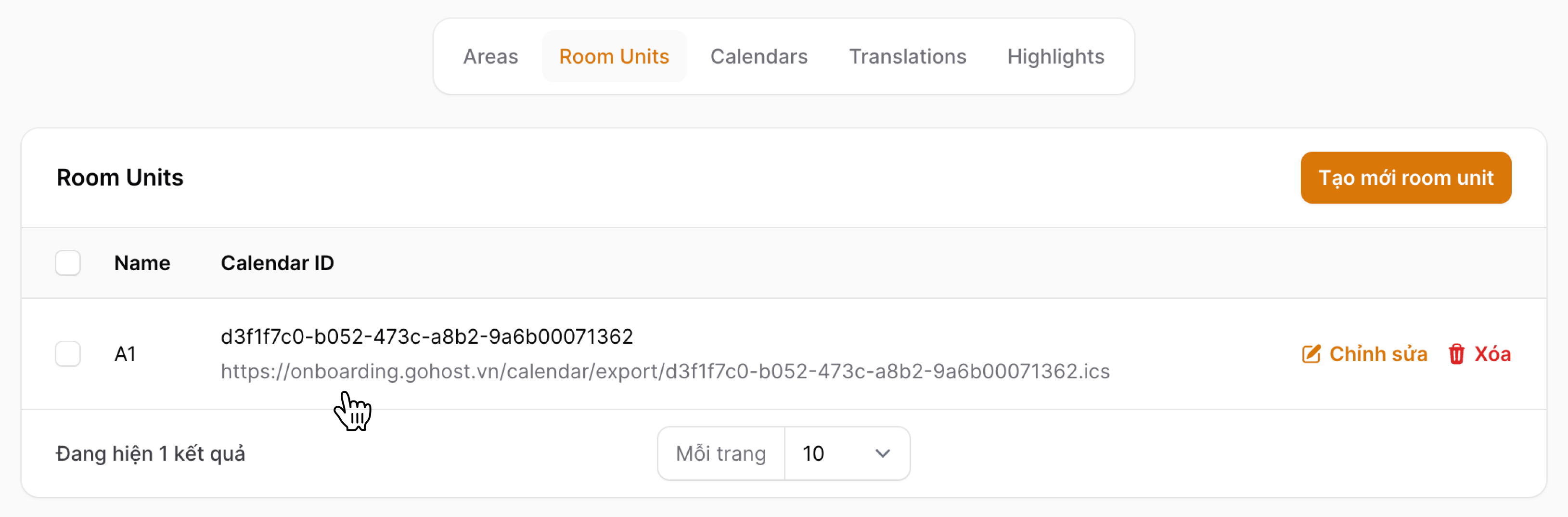 Room unit: Chọn loại phòng mà bạn muốn đồng bộ lịch